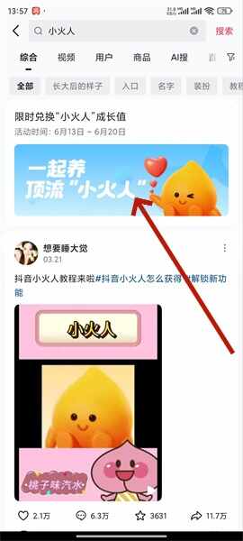 1、大家(jia)打开抖音进行搜索【小火人】在出现的页面点(dian)击进入!