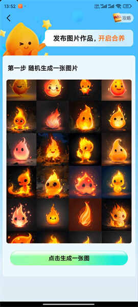 2、莪們先点(dian)击生成一张图片,也就是小火人图片啦!