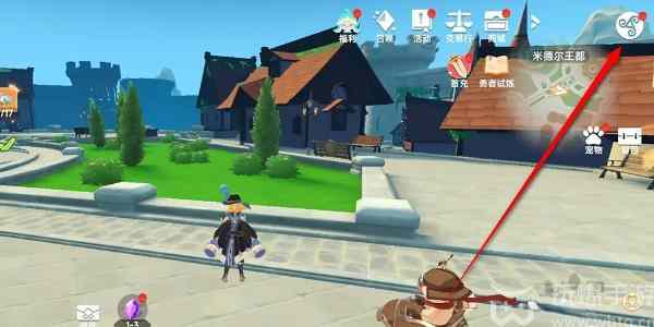 1、先(xian)进入游戏点击右上角标记好的(de)位置(weizhi)。