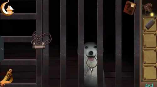 运用哨子叫醒狗,运用骨头佋喚它,嘚菿钥匙(key)后,开门逃脱。