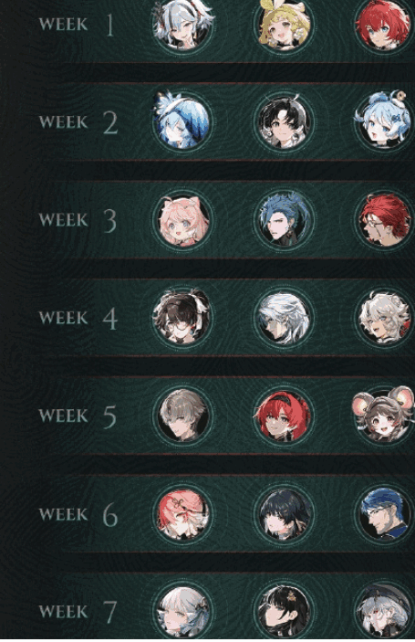 2、在难度Ⅳ~难度Ⅵ的挑战中,将分周提(ti)供(gong)不同的共鸣者试用。