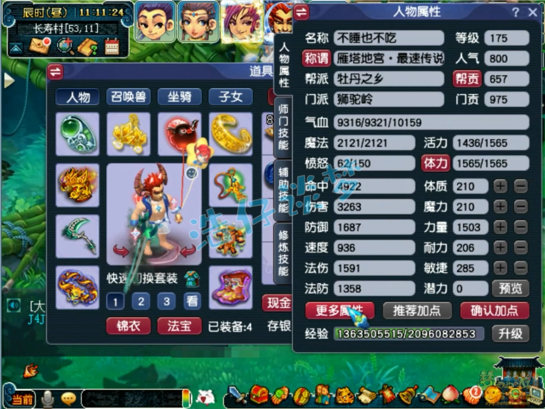 175级狮驼岭打符之后(zhihou)的面板屬性,伤害(harm)达到了3263,挑战各种(various)难度(du)任务都足够(zugou)了!