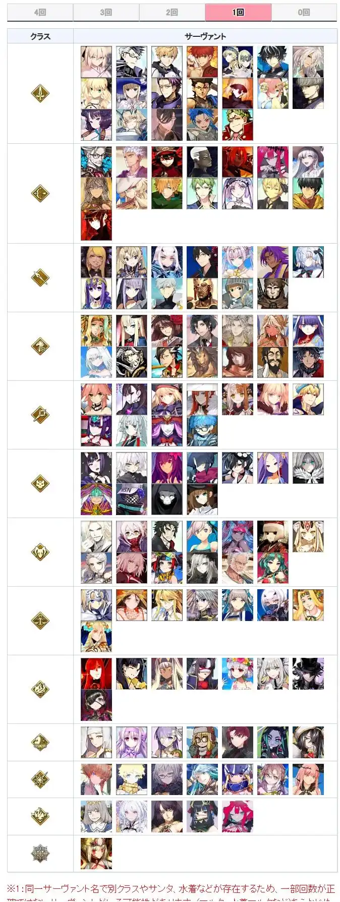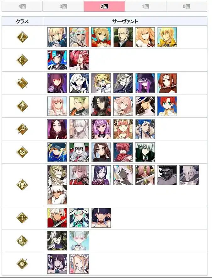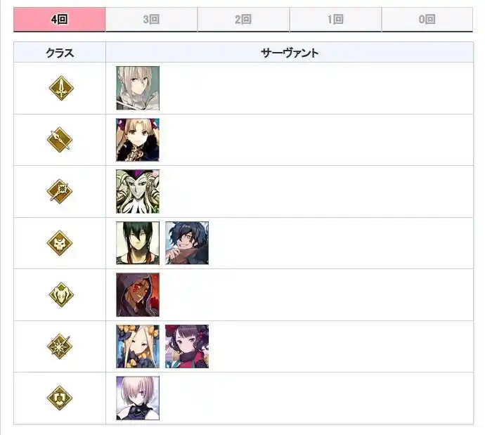 下面就来看一下,过去这8年期间,哪些从者获得的周年礼装次数最多,哪些还没获得过。