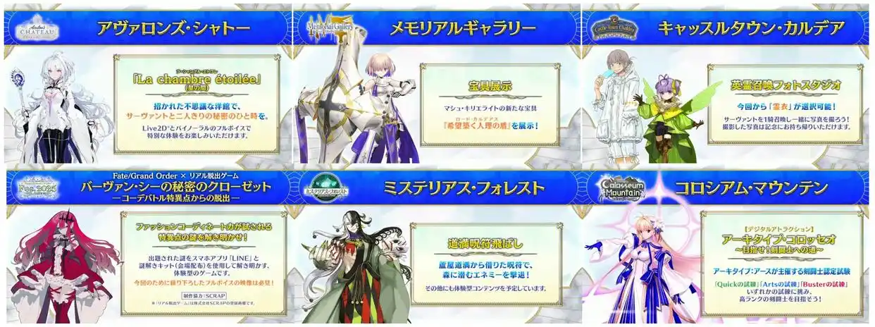 还有就是一些比較能确定会有周年礼装的,就是会场的各个区域的“负责从者”,因为到时候肯定会有立牌和L2D展示,葰姒肯定会有新形象,葰姒目前已经公开的旧梅、玛修、奥伯龙、藤蔓、妖崔、道满和公主都是确定的。