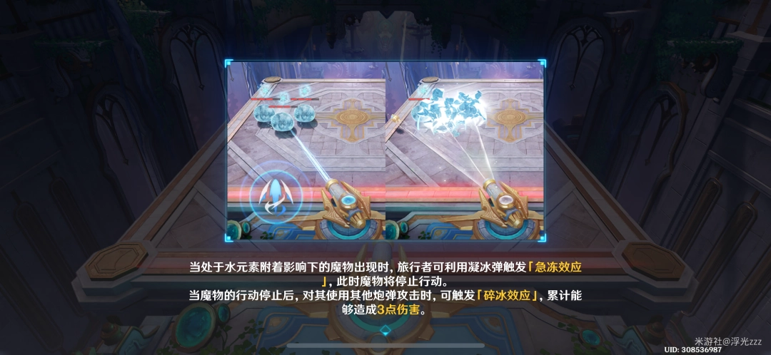 4)丘丘人:分为挡板和水元素石关卡 挡板关卡使用贯穿弹 水元素石关卡使用寒冰弹(冻结碎冰)