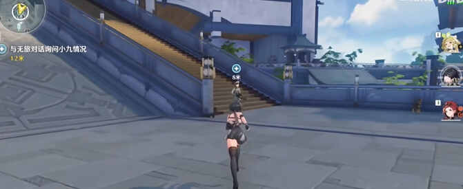 3、跟随(follow)任务指引与无旅对(dui)话(hua)询问小九的情况。