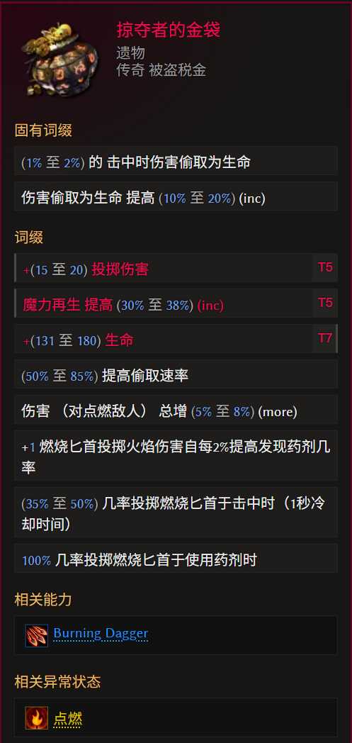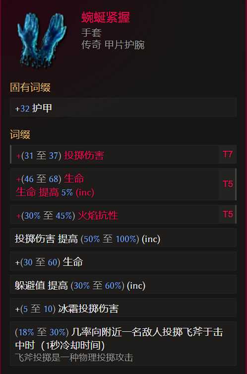词缀优先级:投掷伤害>魔力再生>躲避inc>生命=火焰抗性(可封印击中虚弱)