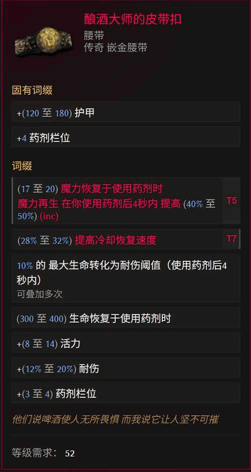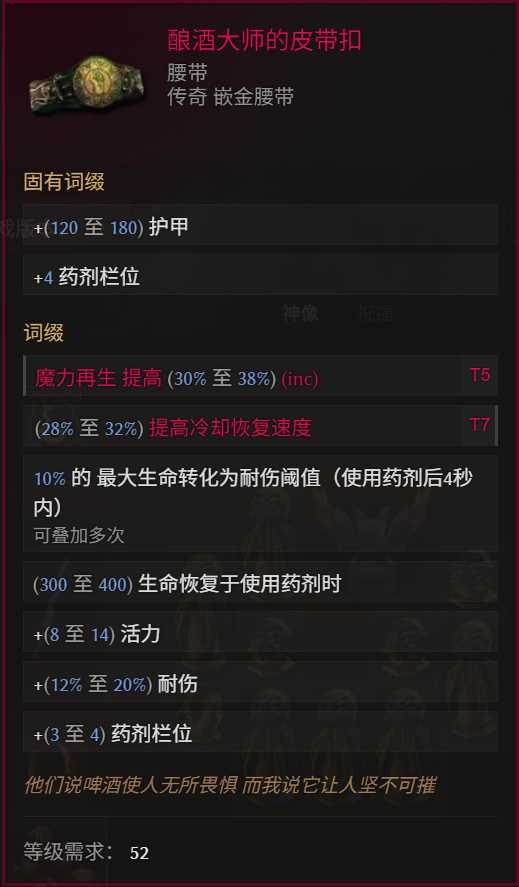 暗金腰带,喝药增加耐伤阈值,提升一击线