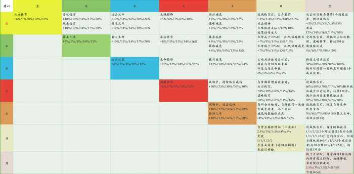 等级加成(jiacheng):15级分别提供「生命加成(jiacheng)(2%/3%/4.5%/12%/20%)」+「全属性加成(jiacheng)(1%/1.5%/2.5%/6%/10%)」。