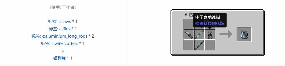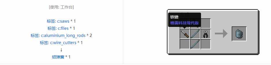 我的世界格雷科技现代版弹簧合成表大全铝弹簧