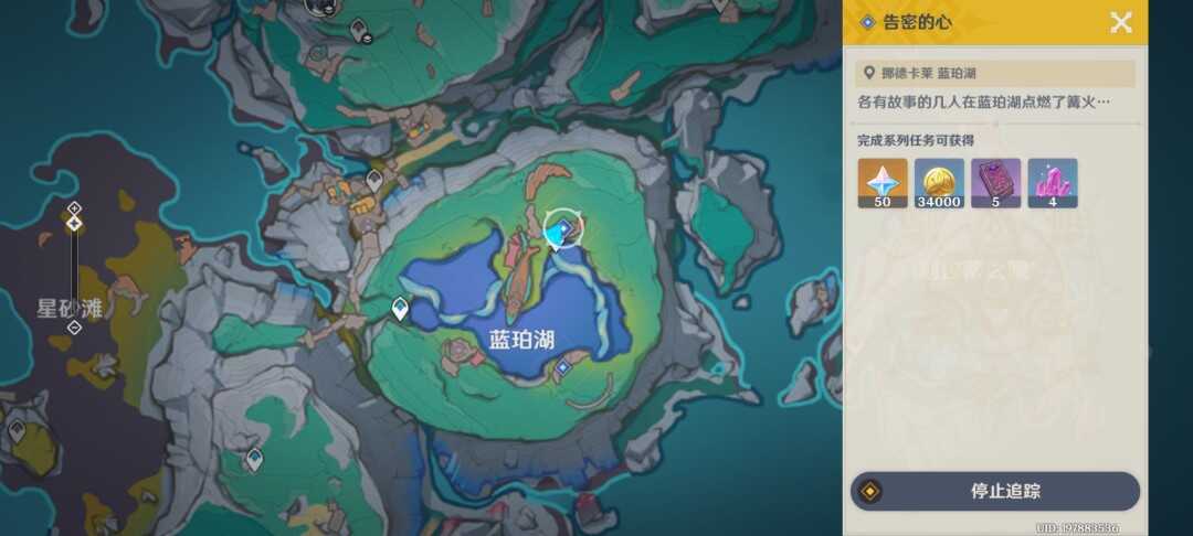 2.了解「识者之证」的故事,答应帮助他们在蓝珀湖寻找隐藏的宝藏