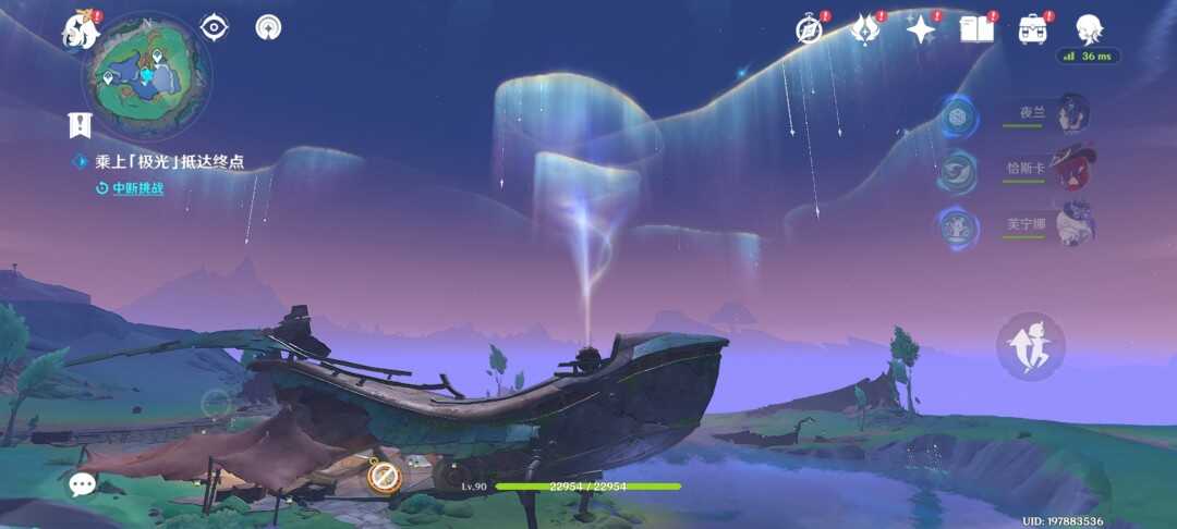 1.我们前往(go to)蓝珀湖,到达蓝珀湖中心的遗迹船篝火旁与众人交谈,触发任务