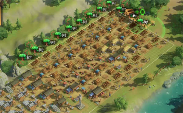 该封地左边拥有大量石头资源(yuan),右边和上方则是树资源(yuan)。可以外围布置伐木场和凿石所,再向内布置大量各级建筑(zhu)即可(ke)。