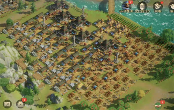 该封地左下为水,布置田庄,上方和右边都是树,布置大量伐木场。再依次向内布置对应的各级建筑(zhu)即可(ke)。