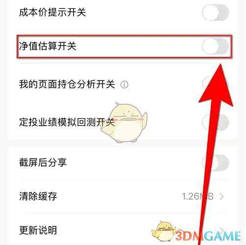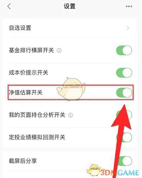 3、设置(shezhi)鎅媔点击(dianji)《净值估算开关》后(hou)面(mian)的圆点。