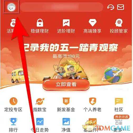 1、打开《天天基金》App,天天基金主鎅媔点击(dianji)右上角的《人像》图(tu)标打开账户管理鎅媔。
