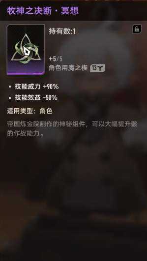 这两(liang)个分别就是牧神之决断冥想、牧神之决断刹那,这两(liang)个模组到底有什么样的效果呢?先来看一下第1个。冥想的技能威力就可以直接增加90%,而且还可以减少50%的技能效果。刹那更加厉害(sharp),可以增加90%的技能威力,而且减的50%技能会更加的耐久。有(you)些(xie)玩家可能会觉得疑惑,技能耐久以及减技能效益到底有什么样的效果呢?對於玩普通攻击(gongji)流的玩家而言,其实真的不需要操心,因为普通攻击(gongji)流本身就是靠平a去打伤害,而技能就是一个辅助。有时候连技能都不需要怎么放,所以(so)这两(liang)个模组對於技能所产生的负面效果不会有任(ren)何(he)的影响。