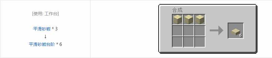 我的世界游戏里面的平滑砂岩台阶合成方法:需要材料用起来个平滑砂岩可以获得6个平滑砂岩台阶,可使用用起来个对应方块合成获得或使用需个对应方块在切石机切石获得。