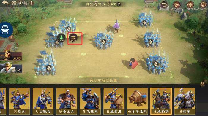 我们可以拖动方阵,调整士兵的位置,也可以调整武将(wujiang)位置。